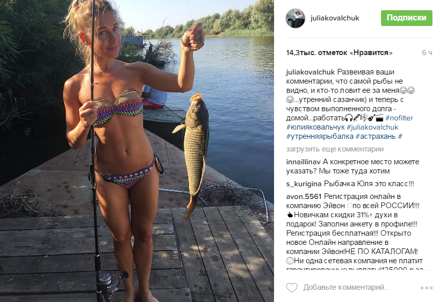 На опубликованном в Instagram снимке Юлия нарядилась в пестрый раздельный купальник, который выгодно подчеркивал красивую фигуру певицы. Поклонники увидели звезду без макияжа с немного растрепанной прической, однако и в этом виде Юлия была очень хороша. В руках певица держала удочку и большую рыбину, которую поймала сама звезда. "Развеивая ваш комментарии, что самой рыбы не видно, кто-то ловит ее за меня", - написала девушка.