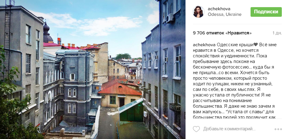 "Я ужасно устала от публичности! Ты не можешь уединиться, быть не в духе, не готовым к постоянному общению, быть хмурым или больным", - рассказала отчаявшаяся звезда. Особенно Анфисе обидно, что поклонники не понимают ее отказов сделать совместный снимок или дать автограф. "Друзья, я просто устала.. устала от того, что мало кто видит во мне человека", - пожаловалась звезда.