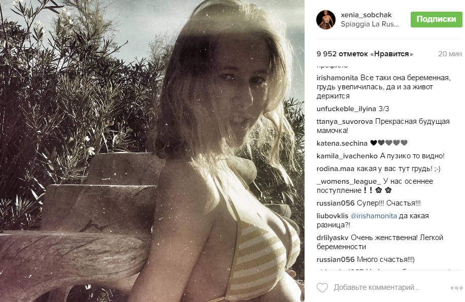"Последние дни лета, ээх", - подписала снимок звезда, умолчав о теме беременности. Однако поклонники поняли намек Собчак и принялись поздравлять будущую мать. "Супер, животик", "Очень красивая будущая мамочка", "Как вас украшает беременность.. желаю вам и вашему малышу здоровья и сил", "Все-таки она беременна, грудь увеличилась и живот", "Очень женственная! Легкой беременности", "Беременность вам к лицу", "И все выдохнули", - такие отзывы оставляли поклонники, у которых не осталось сомнений по поводу беременности любимой телеведущей.