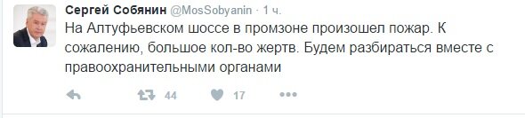Как ранее сообщал "Российский Диалог", по официальным данным, в результате пожара на Алтуфьевском шоссе погибли 17 человек. Неофициальные источники сообщают о гибели более двадцати человек.