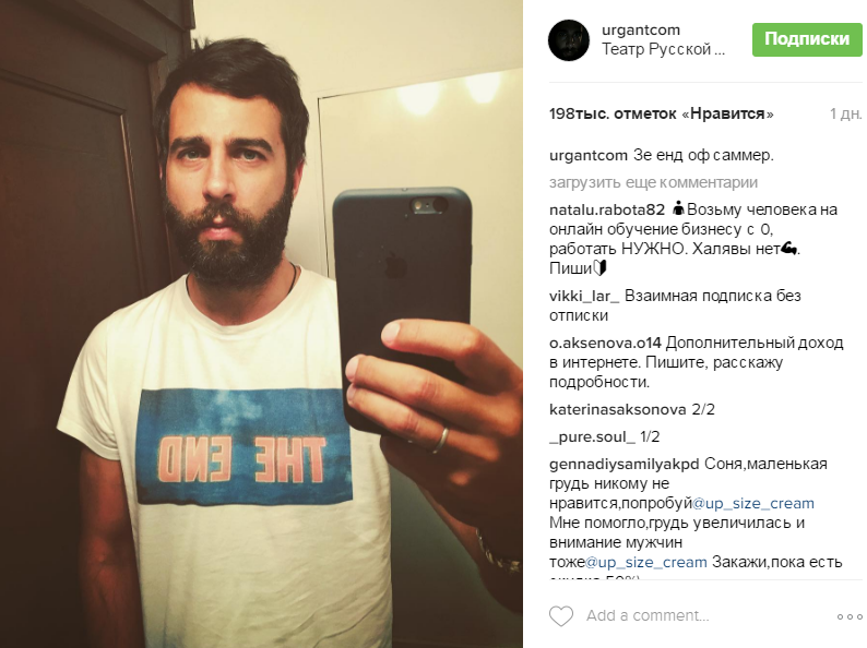 Поклонницам не понравился такой эксперимент ведущего, и они попросили Ивана срочно сбрить бороду, так как, по их мнению, Урганту она совершенно не идет. "Ужас", "Очень уставший от жизни мужик получился", "Че с тобой?", "Что вы с собой сделали?, "Робинзон Ургант, срочно сбрить бороду", - советовали поклонники.