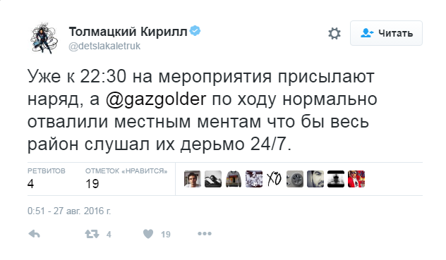 "Уже к 22:30 на мероприятия высылают наряд, а @gazgolder походу нормально отвалили местным ментам, чтобы весь район слушал их дерь** 24/7", - пожаловался Кирилл. Неприятное замечание задело Василия за живое. Он написал в своем Instagram лаконичный ответ, в очередной раз обозвав Децла. «Децл – лохматое чмо-2",- написал Вакуленко. Правда, поклонники певца пристыдили его за публичные разборки и позднее Василий удалил скандальный пост.