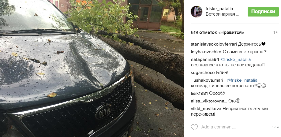 На автомобиль Натальи Фриске упало дерево: поклонники не на шутку перепугались за судьбу девушки