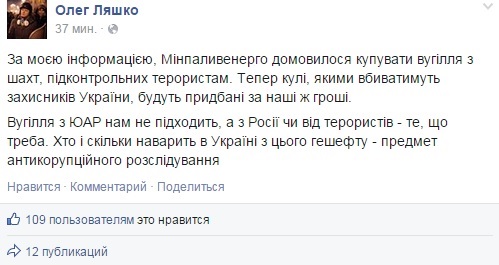 Об этом лидер Радикальной партии написал на своей странице в facebook.