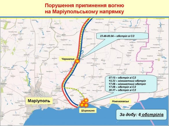 На мариупольском направлении ополченцы за сутки всего 6 раз обстреляли украинские позиции – в районе н. п. Чермалык, Широкино.