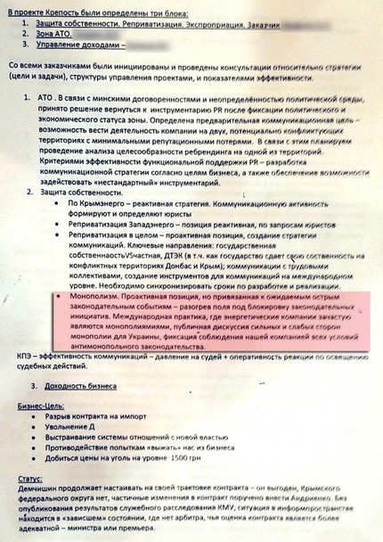 В частности в компании сообщили, что они не знают источник происхождения данного документа опубликованного нардепом Мустафой Найемом на сайте "Украинской правды". Об этом говорится в официальном заявлении компании. Кроме того в компании заявляют, что таким образом осуществляется экономико-политическое давление в адрес ДТЭК.