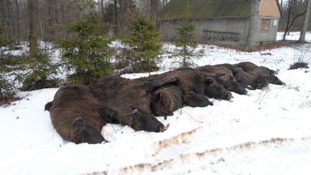 Сегодня, 8 февраля, стало известно, что в Винницкой области на Украине на пруду Млинок погибли 8 зубров.