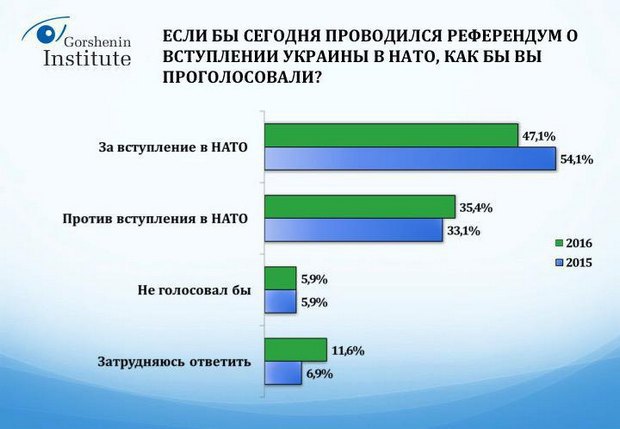 Как стало известно, если сравнивать с 2015 годом, количество тех, кто отдал бы свой голос за вступление в НАТО и ЕС стало меньше.