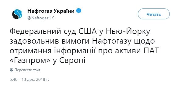Как отметили в "Нафтогазе", Нью-Йоркский суд своим решением обязал несколько предприятий раскрыть информацию о "Газпроме" украинской стороне.