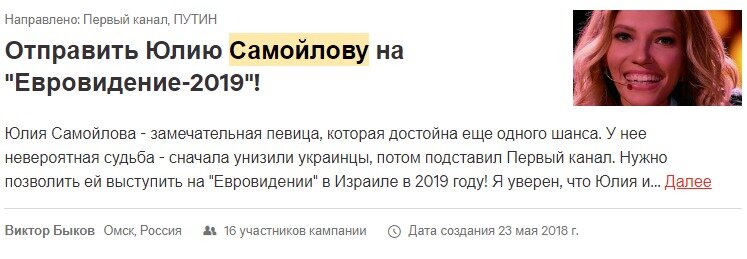 В Сети продолжают искать крайних после провала представительницы России Юлии Самойловой на Международном песенном конкурсе "Евровидения - 2018", сообщает "Российский Диалог".