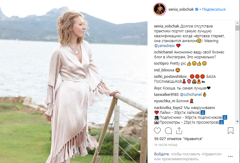 Ксения Собчак опубликовала на своей странице в соцсети Instagram фотографию, оставив комментарий под ней.