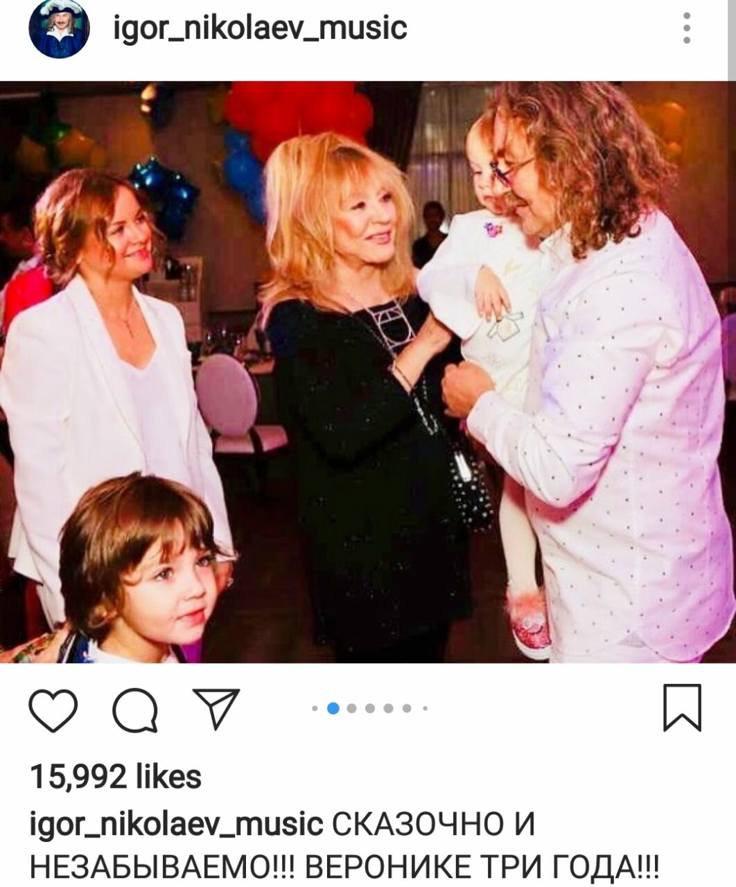 На страницах в социальной сети "Инстаграм" стали появляться снимки и видео с праздника. К примеру, отец именинницы выставил несколько кадров, на которых запечатлен с гостьей Примадонной Аллой Пугачевой.