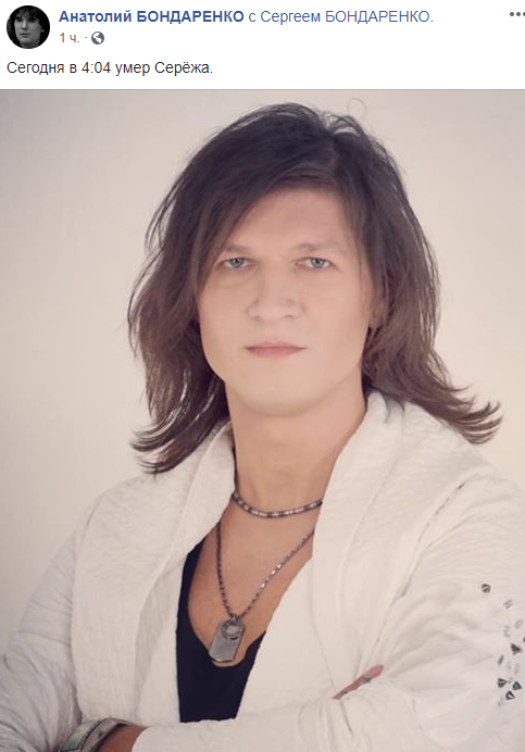 На своей официальной странице в социальной сети "Фейсбук" отец Сергея Анатолий Бондаренко, который и основал в 90-е года коллектив "Нэнси", рассказал о смерти наследника. 31-летний музыкант скончался в 04:04 утра.