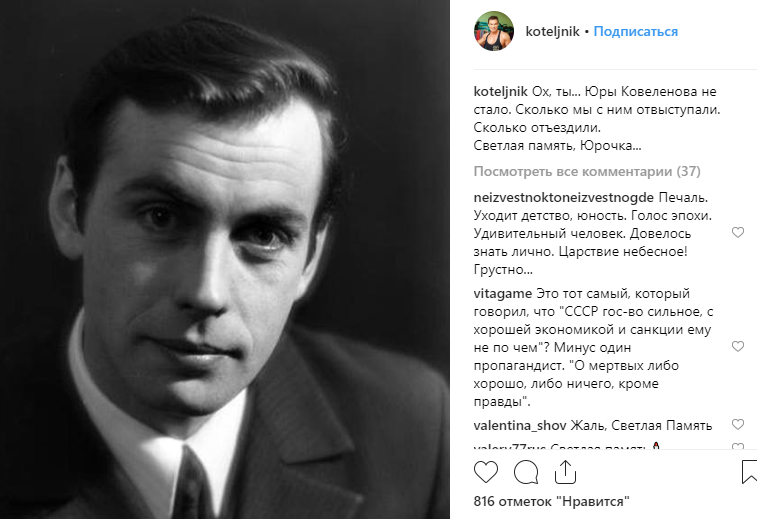"Юры Ковеленова не стало. Сколько мы с ним отвыступали", – огорошил известием артист.
