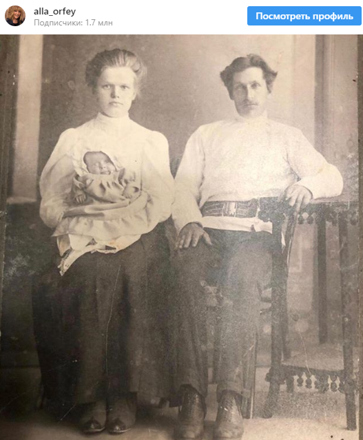 На своей официальной странице в социальной сети "Инстаграм" Алла Борисовна решила углубиться в воспоминания. Она выложила в Сеть изображения своих бабушки и дедушки. Кадр, естественно, черно-белого формата с выцветшими фрагментами.