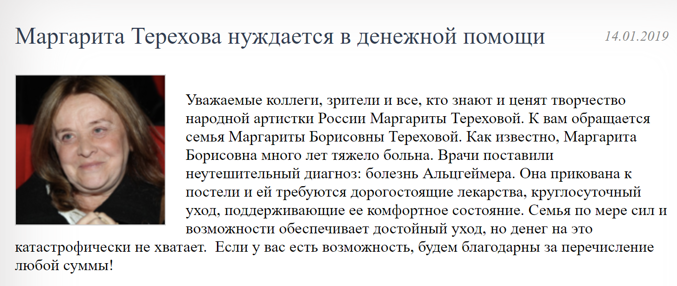 Отметим, у Тереховой диагностировали болезнь Альцгеймера.