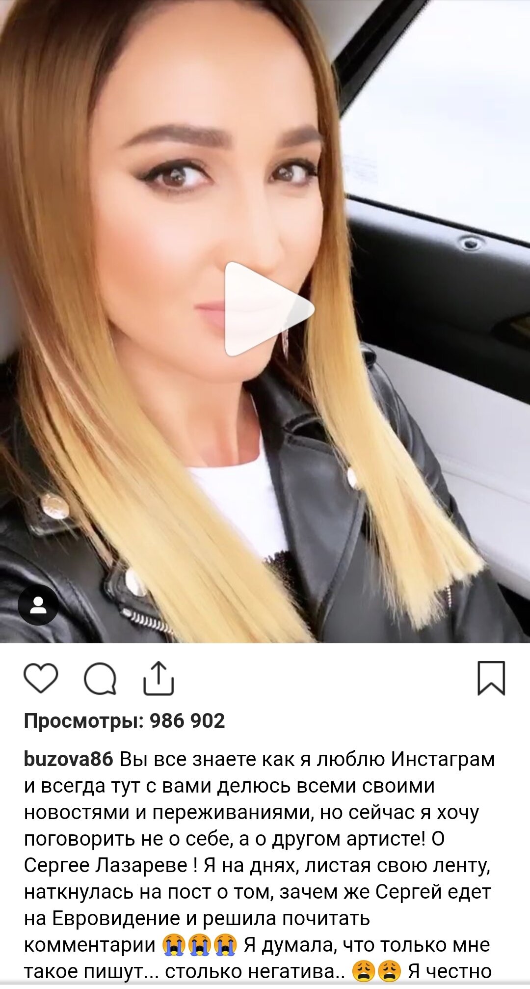 Российская поющая телеведущая Ольга Бузова решила защитить представителя России на "Евровидении - 2019" Сергей Лазарева от нападок критиков, передает "Российский Диалог" с отсылкой на "Лигу Новости России".