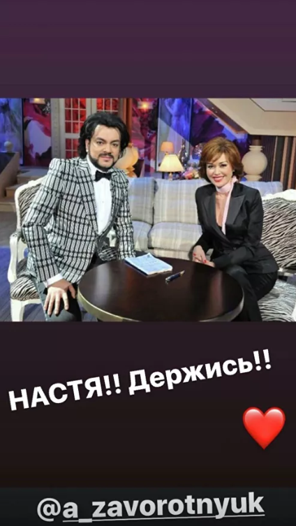 Киркоров опубликовал в разделе Instagram Stories совместную с Заворотнюк фотографию, отметив на ней профиль находящейся в тяжелом состоянии артистки. Также он ей выразил краткие слова поддержки.
