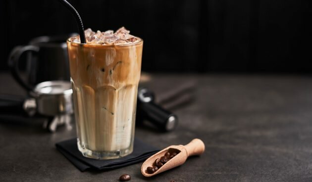 3. Кофе со льдом. Сначала нужно добавить крепкий черный кофе, приготовленный любым из существующих способов, в емкость со льдом. Затем по вкусу добавляется сахарный сироп, немного молока или сливок. После этого все тщательно перемешать.