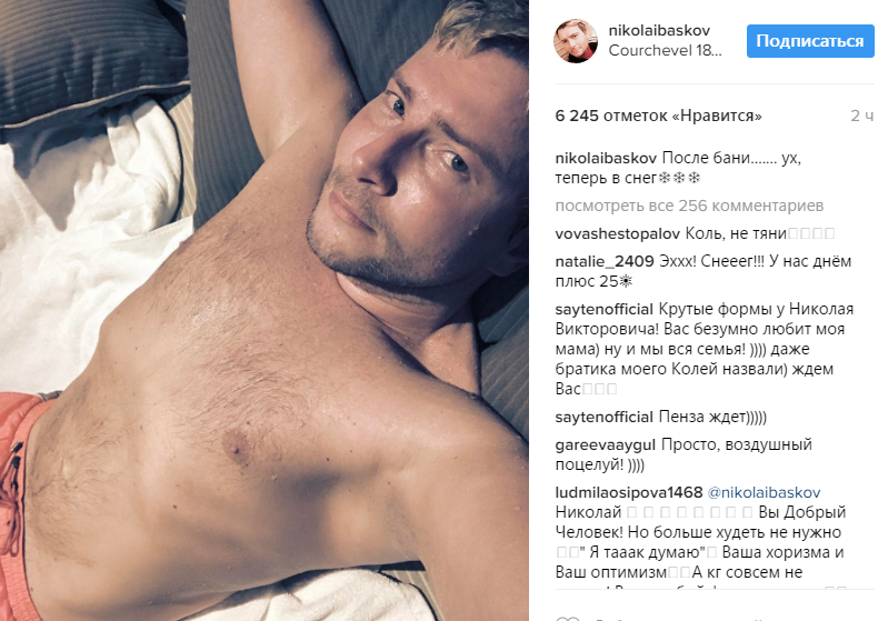 Сегодня певец опубликовал снимок их отдыха, на котором он запечатлен с голым торсом. Поклонницы были впечатлены, так как артист сильно похудел. Впрочем, этими переменами все довольны. "Николай, вы очень стройный", "Похудел то как, красота", "Как постройнел, классно", - высказывались участники обсуждения.