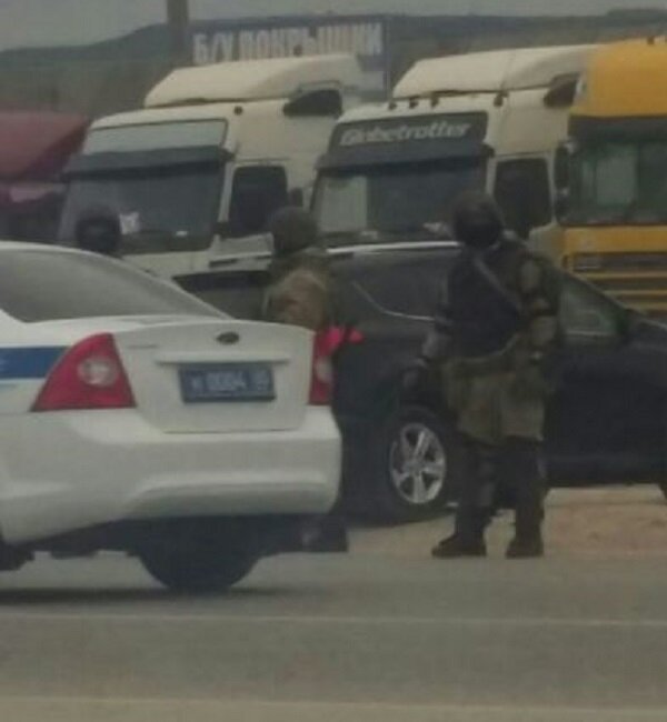 Под Махачкалой автоматчики Росгвардии заблокировали колонну протестующих дальнобойщиков: кадры