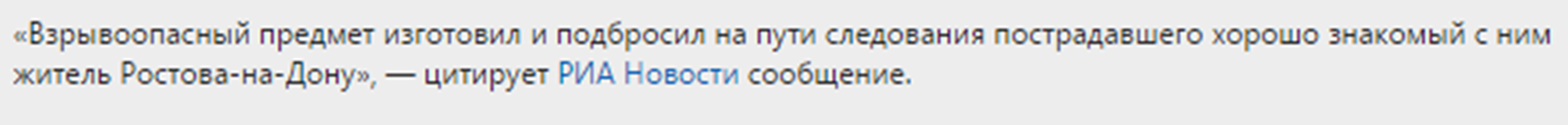 Правоохранители провели проверку и выяснили, что взорвавшийся предмет изготовил и подбросил вышеупомянутый гражданин на пути следования потерпевшего.