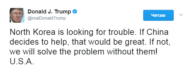 При этом американский президент отметил, что Вашингтон в состоянии самостоятельно решить вопрос с Пхеньяном.