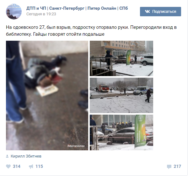 Жуткие кадры происшествия в Петербурге: вследствие взрыва устройства подростку оторвало кисти рук