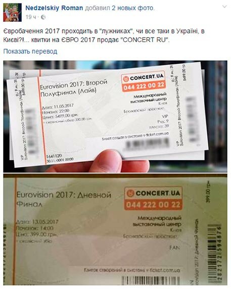 "Евровидение-2017 проходит в "Лужниках" или все же в Украине, в Киеве?!" - написал на своей страннице в Facebook директор дворца "Украина" Роман Недзельский.