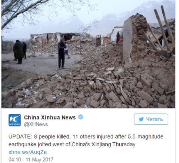 В результате природного катаклизма разрушены свыше 200 зданий в Синьцзян-Уйгурском автономном округе КНР.