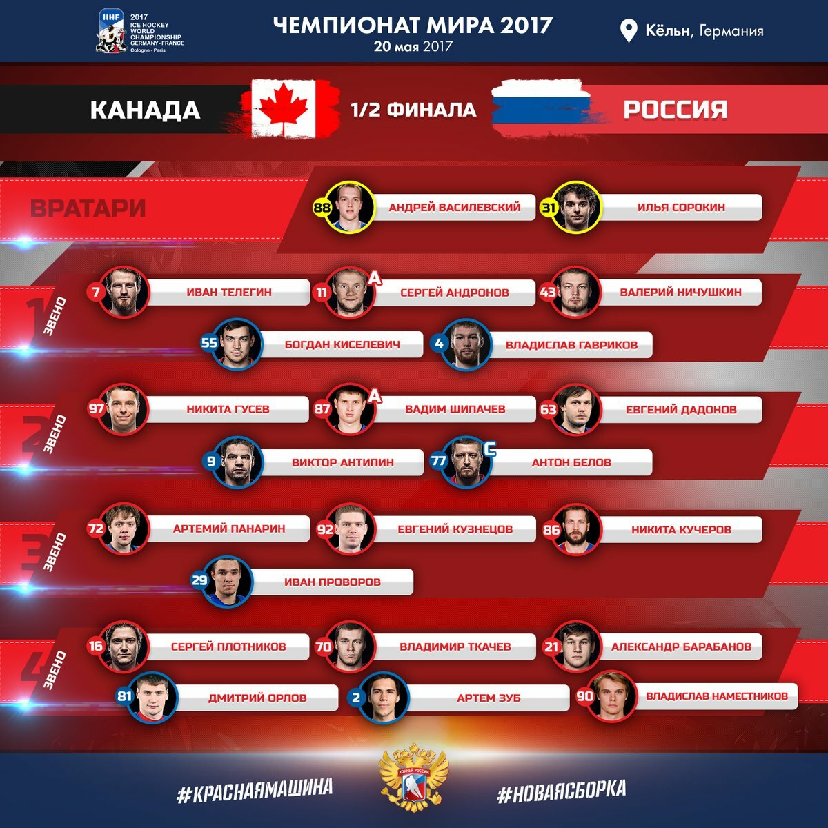 Наша сборная выйдет сегодня на лед в таком составе.