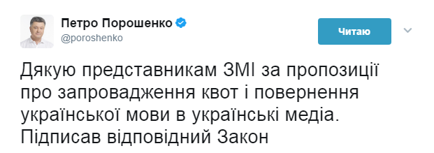 По словам украинского президента, инициаторами возвращения украинского языка в телеэфир стали представители средств массовой информации.