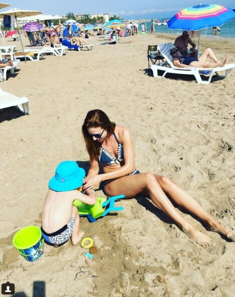 Как можно судить из фотографий, которые Наталья активно добавляет на свою официальную страницу в социальную сеть "Инстаграм", женщина прекрасно проводит свое свободное время на пляже. На одном из кадров она позирует в синем купальнике вместе со своим сыночком, который увлечен куличиками.