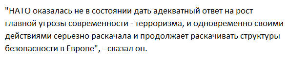 Подобная позиция НАТО явно противоречит ожиданиям народов Европы, которые прежде всего ожидают защиты от террористов, атакующих европейские страны.