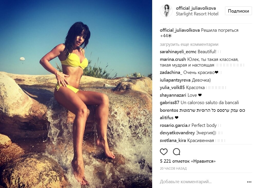 Недавно Юлия Волкова отправилась на отдых за границу. На курорте знаменитая брюнетка часто фотографируется, выкладывая результат съемок в свой микроблог. Недавно в Instagram Юлии появилась серия фото, на которых она запечатлена в купальнике, сообщает "Российский Диалог".