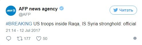 Напомним, возглавляемая США коалиция начала операцию по "зачистке" Ракки от боевиков ИГИЛ еще в мае 2016 года, однако к активной фазе Вашингтон и его союзники перешли лишь после избрания президентом Дональда Трампа. Американская авиация наносит регулярные авиаудары по городу, а наземные силы, включая спецназ, оказывают поддержку местным сирийским оппозиционным силам, которым Соединенные Штаты поставляют оружие.