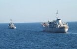 Боевые корабли Украины проходят Керченский пролив с поддержкой самолет...