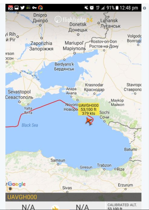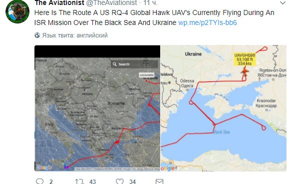 Подробный маршрут разведывательного дрона GlobalHawk опубликовал CivMilAir.