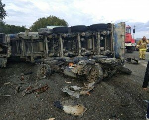 Шофер самосвала, груженого 23 тоннами песка, двигался в сторону Екатеринбурга, однако выехал на полосу встречного движения, после чего и случилось жуткое столкновение с двумя "УАЗами", которые ехали друг за другом в направлении Полевского.