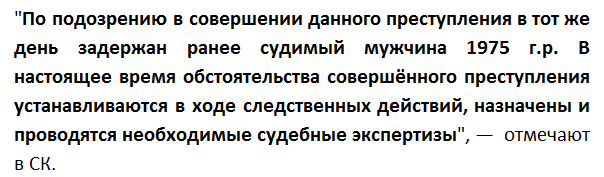 Вскоре правоохранителям удалось найти и задержать ее убийцу. Как оказалось, 42-летний мужчина работал дворником и в тот роковой день был в гостях у девушки. В СК отмечают, что мужчина ранее уже имел проблемы с законом.