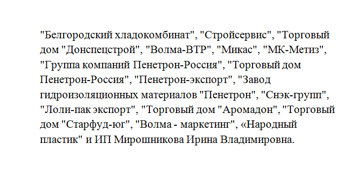 В санкционный список, в частности, попали "Стройсервис", "Снэк-групп", "Лоли-пак экспорт".