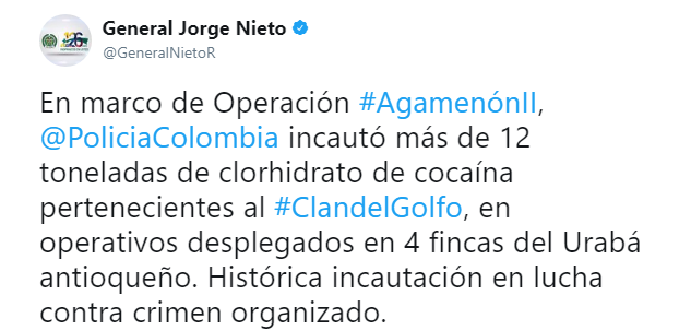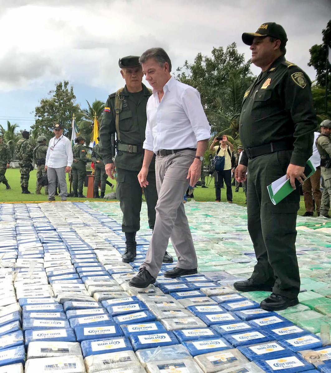 Наряду с министром обороны, военными и полицейскими, президент Хуан Мануэль Сантос прибыл в Антиокию. Глава государства заявил, что это "это крупнейшая конфискация кокаина полицией в ходе одной операции", затем он прошелся по наркотикам, по вспышки фотоаппаратов.