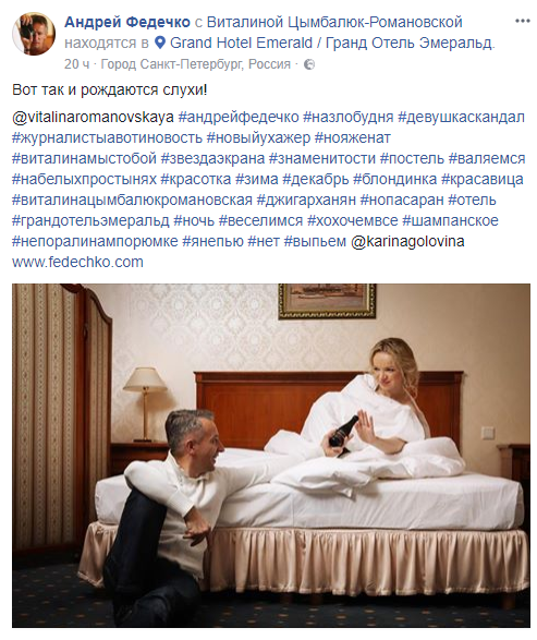 "Вот так и рождаются слухи!" – прокомментировал пикантное фото Андрей Федечко.