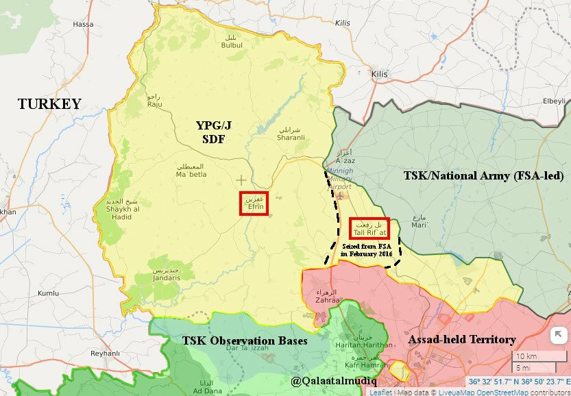 #Afrin Offensive: following weeks of #TSK reinforcements near border with #Syria but also in Syria itself (N. #Aleppo & N. #Idlib), #FSA-led National Army started also to mobilize. Multiple convoys moving. pic.twitter.com/iVEoxAbmHO