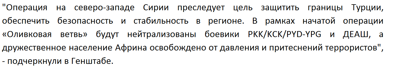 В генштабе Турции заявили, что операция против курдских отрядов на территории САР получила название "Оливковая ветвь" и была начата сегодня, 20 января, в 17:00 по местному времени.