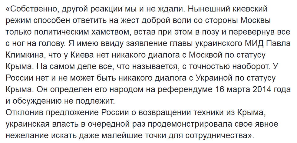 Напомним, глава украинского внешнеполитического ведомства Павел Климкин дал понять, что Киев не станет забирать свое вооружение из Крыма в ответ на предложение российского президента.