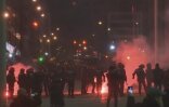 На опубликованных в Сети кадрах видно, как люди набрасываются друга на друга и начинают наносить удары руками и ногами, многие в качестве оружия используют древко для флага.
