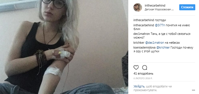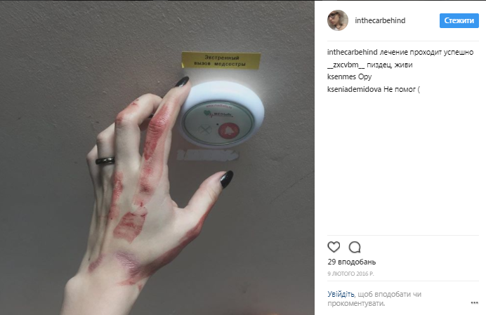На одном из фото у Татьяны окровавлены пальцы рук. На следующей публикации она лежит в больничной палате и пророчески комментирует: "Следующее фото будет в гробу".