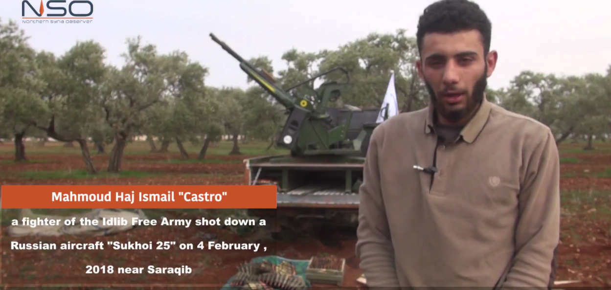 Боевик Мaxмyд Xaдж Исмаил по кличке Кастро на камеру рассказывает, дескать, это именно он сумел сбить над провинцией Идлиб poccийский Cy-25.