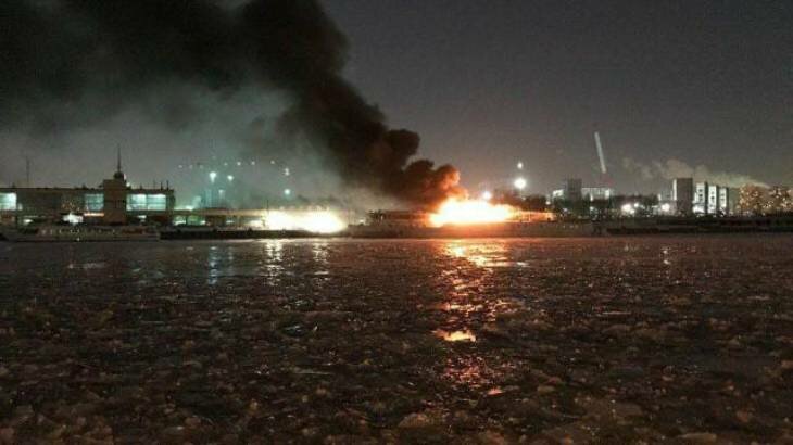 Огонь очень быстро распространился. По данным источника Interfax в экстренных службах столицы, полыхают уже три палубы. К счастью, на судне не оказалось людей.